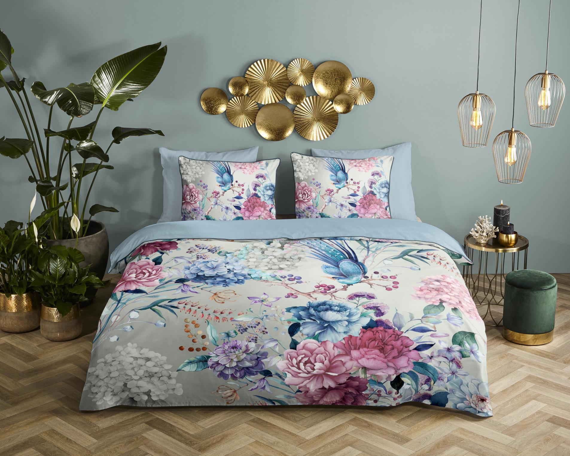 Housse de couette en satin Mondet de Descanso. Cette housse de couette à fleurs, de couleur grise, est fabriquée en 100% coton-satin. La housse de couette Descanso est luxueuse, élégante et stylée. Le dos a une couleur unie assortie. La housse de couette et les taies d'oreiller sont finies avec un passepoil luxueux dans une couleur assortie. Cela donne une allure chic à votre chambre. La housse de couette de Descanso est fabriquée en 100% coton-satin biologique. Le satin est une technique de tissage spéciale qui donne un bel éclat et un tissu doux et souple. Il est respirant, régulateur d'humidité et de chaleur, et donc très confortable. Certifié Oeko-Tex : exempt de substances nocives. Lavable à max. 60°C et adapté au sèche-linge.