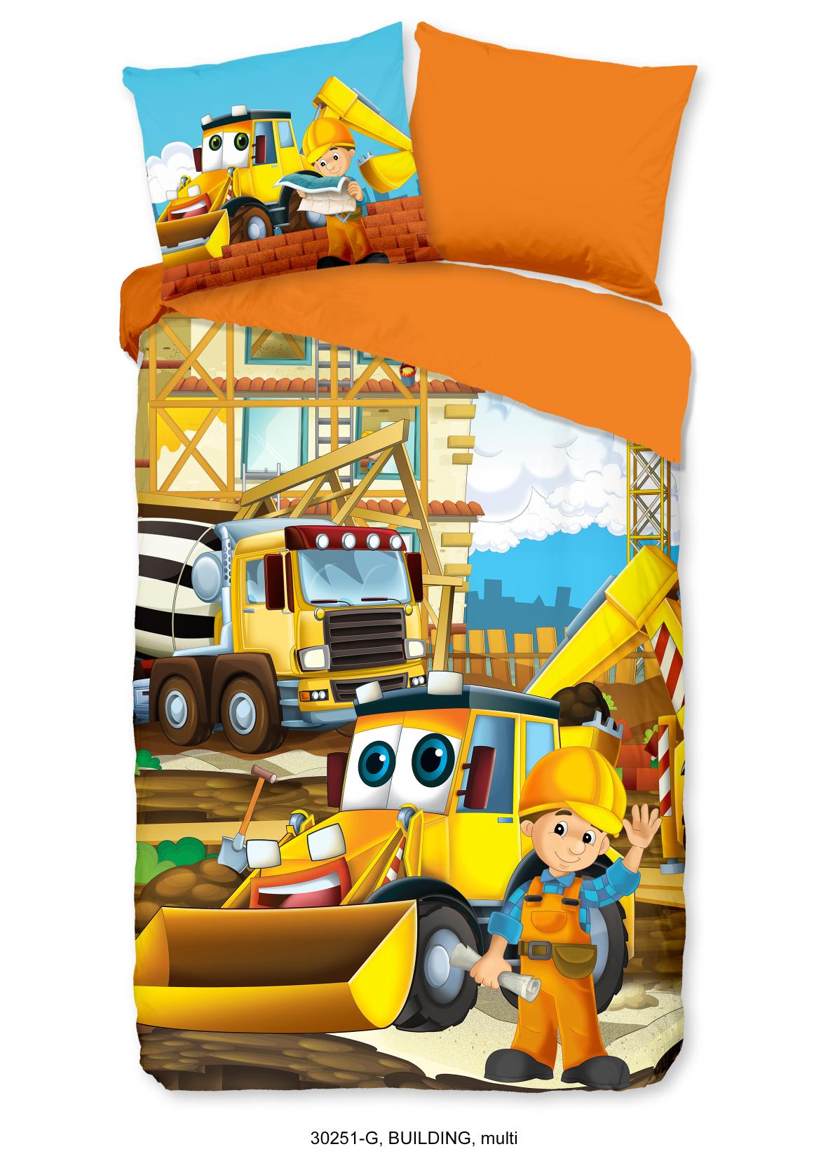Housse de couette pour enfants Building de Good Morning en couleur multi, avec un imprimé de pelleteuse. La housse de couette est faite de 100% coton. Cette qualité est respirante, absorbante et douce au toucher. Cette jolie housse de couette pour enfants est un ajout amusant à toute chambre d'enfant. La housse de couette pour enfants est adaptée à toutes les saisons. Le coton 100% est agréablement frais en été et procure de la chaleur en hiver.