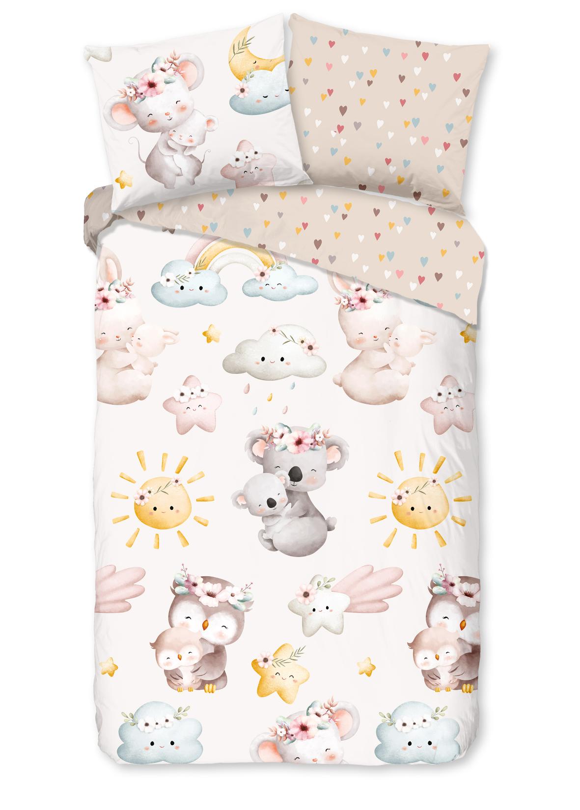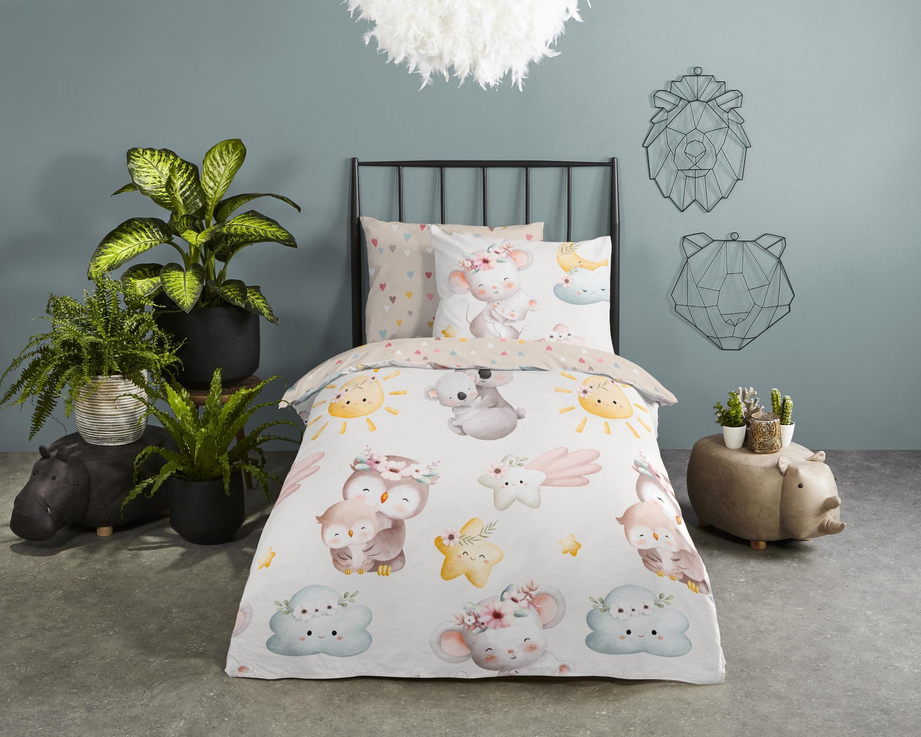 Housse de couette pour enfants Hugs de Good Morning en couleur sable, avec un imprimé d'animaux avec des bébés. La housse de couette est faite de 100% coton. Cette qualité est respirante, absorbante et se sent douce et souple. Cette jolie housse de couette pour enfants est un ajout amusant à toute chambre d'enfant. La housse de couette pour enfants est adaptée à toutes les saisons. Le coton 100% est agréablement frais en été et procure de la chaleur en hiver.