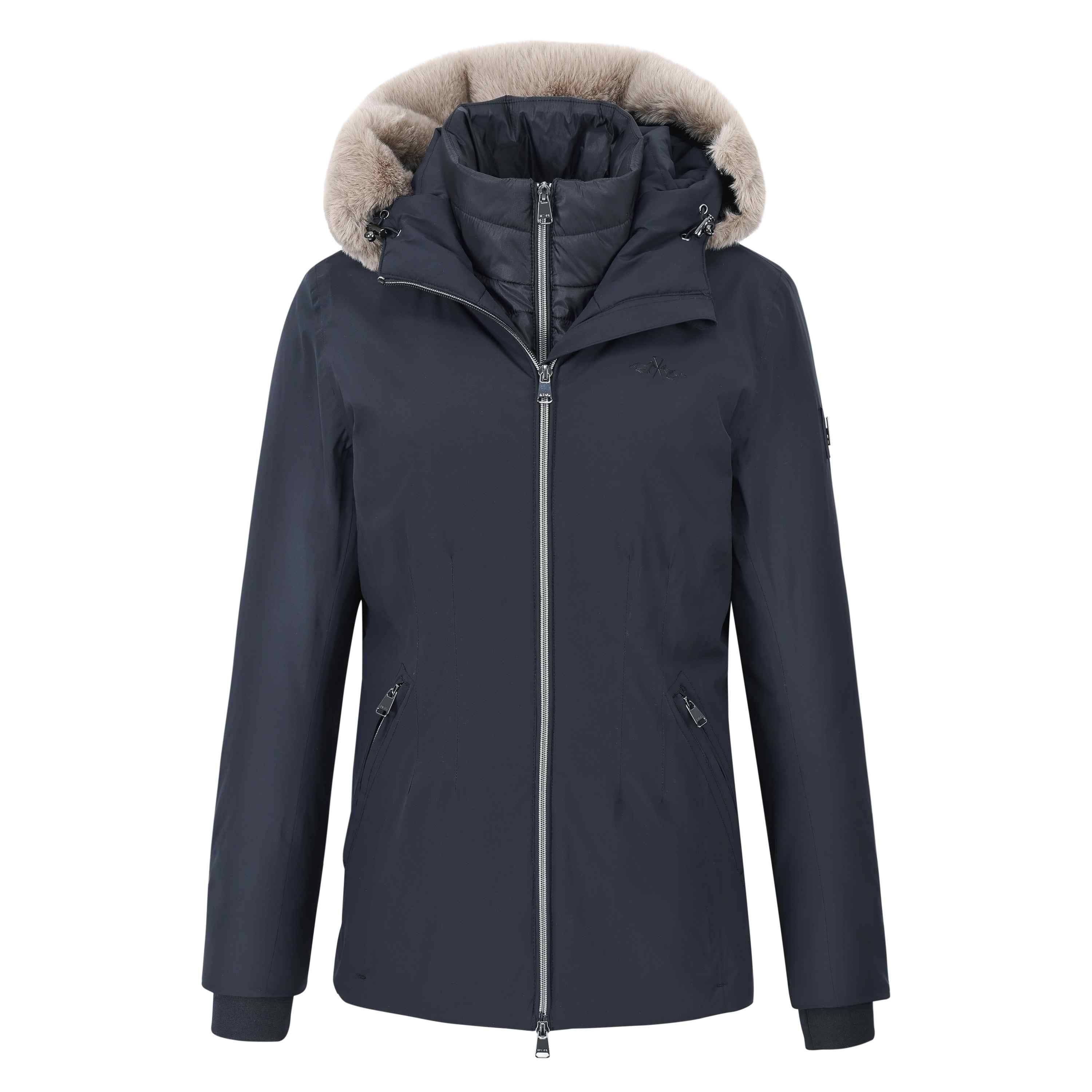 Veste matelassée élégante de taille moyenne * Col montant * Fourrure de luxe autour de la capuche * Veste intérieure amovible en tissu brillant perlé * Capuche ajustable * Coutures entièrement scellées * Déperlant * Coupe-vent * Fermeture éclair à double sens à l'avant * Tirettes de marque * Doublure contrastée * Étiquette Fakedown imprimée brillante à l'intérieur de la veste sur la doublure * Poignets intérieurs en fine côte * Protecteur de menton * Poches avant avec fermetures éclair * Poche intérieure avec fermeture éclair * Logo HV Polo imprimé en métal sur la poitrine côté gauche du porteur * Accessoires métalliques noirs * Plaque de chevaux métallique sur la manche supérieure côté gauche du porteur