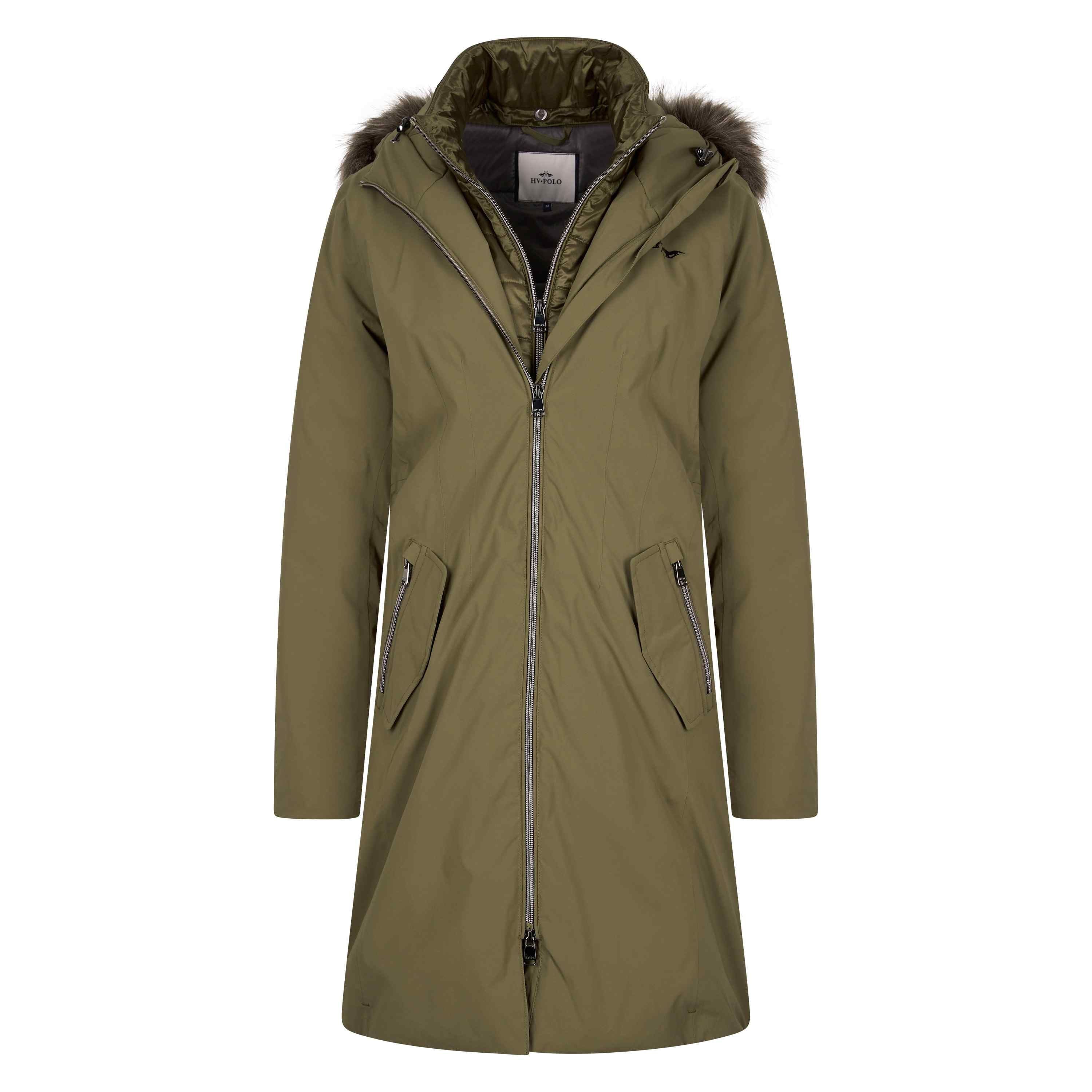 Parka élégante à rembourrage moyen * Col montant * Fourrure de luxe autour de la capuche * Veste intérieure amovible en tissu brillant perle * Capuche ajustable * Coutures entièrement étanchées * Déperlant * Coupe-vent * Fermeture éclair à double sens à l'avant * Tirettes de marque * Doublure contrastée * Étiquette Fakedown imprimée brillante à l'intérieur de la veste sur la doublure * Poignets intérieurs en fine côte * Protège-menton * Poches avant avec rabat et fermetures éclair * Fentes latérales avec boutons-pression invisibles * Poche intérieure avec fermeture éclair * Logo HV Polo imprimé en métal sur la poitrine côté gauche du porteur * Accessoires métalliques noirs * Plaque de chevaux métallique sur la manche supérieure côté gauche du porteur