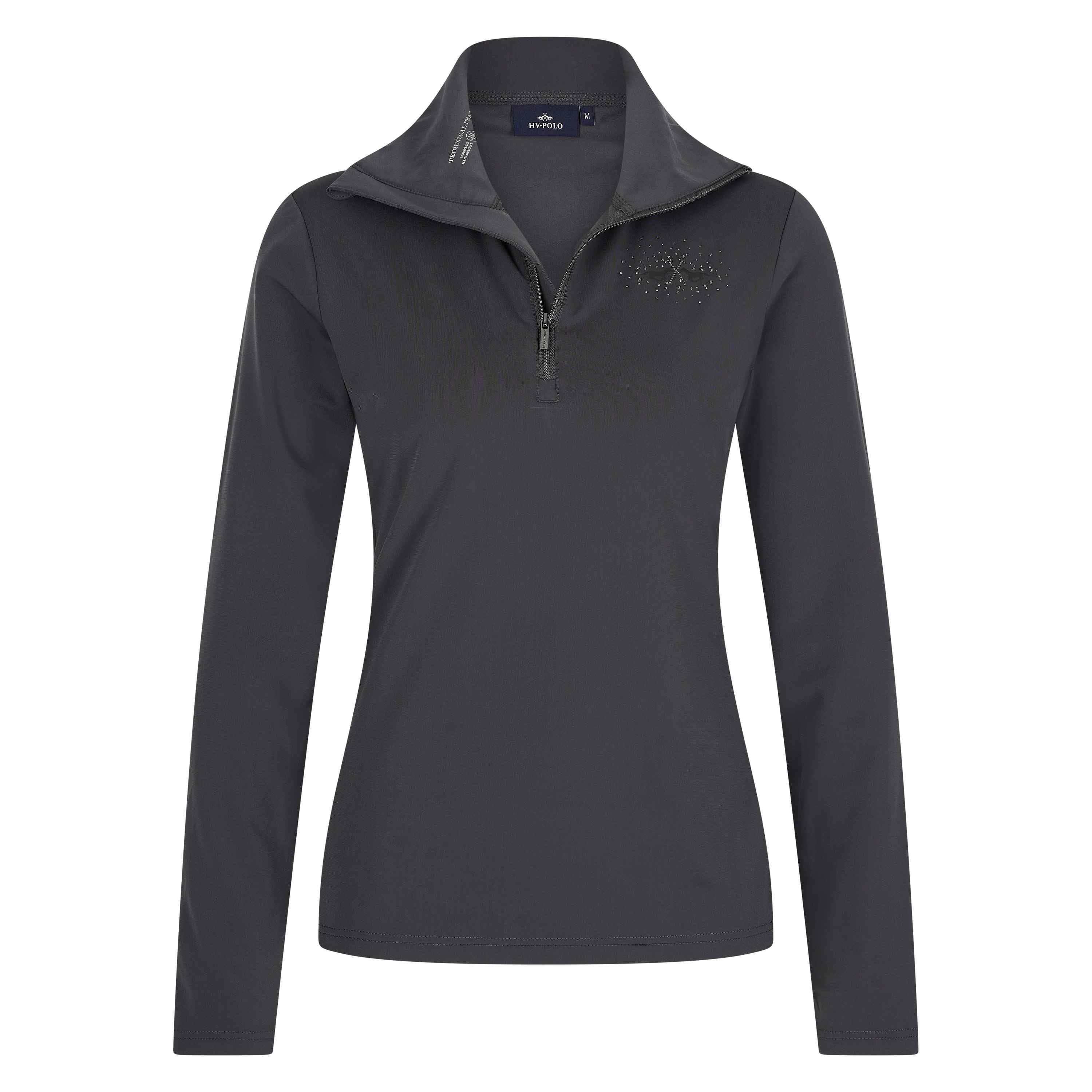 Pull sportif avec fermeture éclair au centre devant * Style ajusté * Extensibilité dans 4 directions * Intérieur brossé * Respirant * Col montant * Logo Fancy Horses avec strass et impression sur la poitrine, côté gauche du porteur * HVPL en impression métallique au col