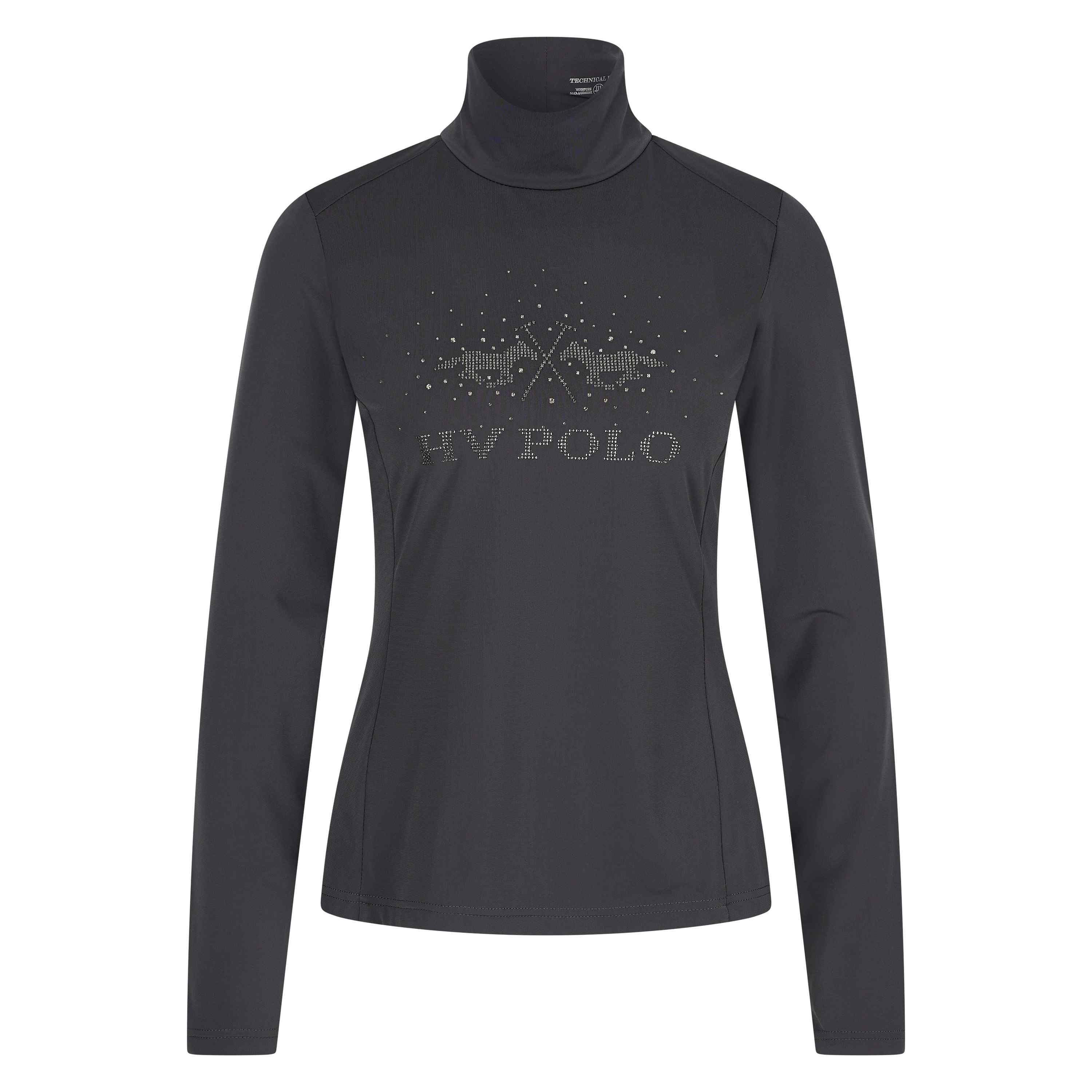 Pully sportif * Style ajusté * Extensible dans 4 directions * Intérieur brossé * Respirant * Col montant * Grande œuvre d'art avec strass au milieu de la poitrine * Œuvre d'art en transfert thermique métallique au centre du dos sous le col