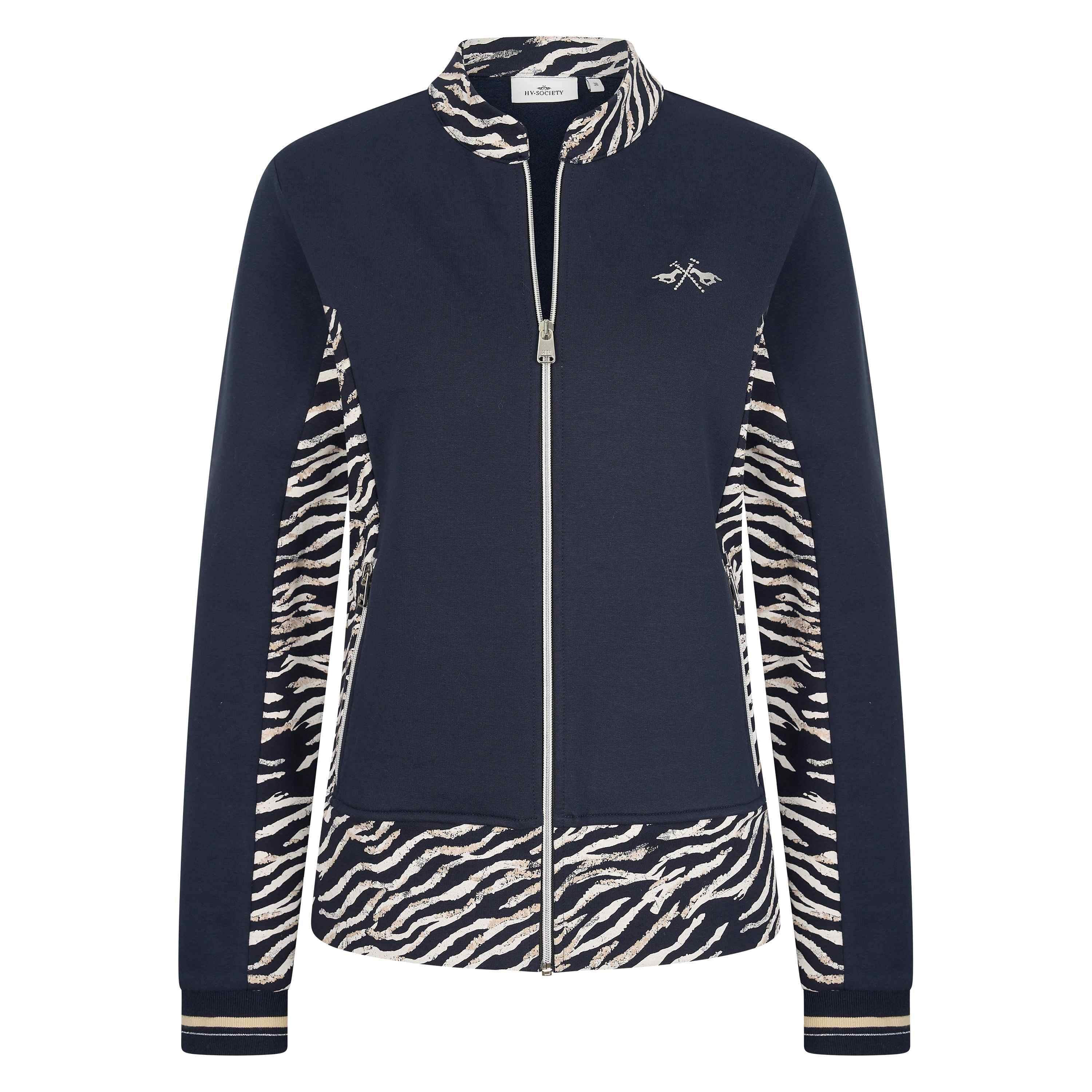 Libérez votre côté sauvage avec notre nouveau cardigan en molleton ! \n\nConfectionné en tissu molleton confortable et orné d'imprimés zèbre saisissants, ce cardigan est parfait pour ceux qui veulent se démarquer de la foule. Les poches zippées et la fermeture éclair avec tirettes de marque ajoutent une touche moderne, tandis que les poignets en côtes avec rayures contrastées donnent une allure sportive. \n\nComplété par un logo sur la poitrine, ce cardigan est un incontournable pour ceux qui aiment exprimer leur style unique. Obtenez le vôtre aujourd'hui et faites sensation où que vous alliez !