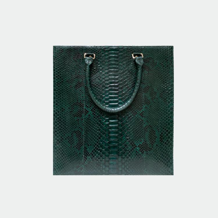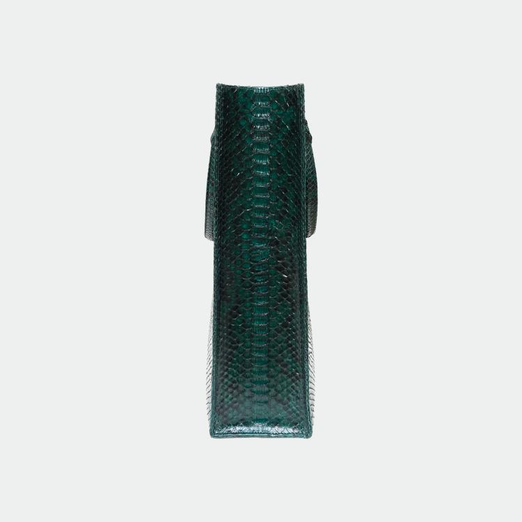 Sac en python, avec doublure intérieure en cotonet anses rigides. Compartiment unique avec deuxpetites poches et une poche zippée. Bandoulièreamovible en python.Dimensions : 36 x 37,5 cm