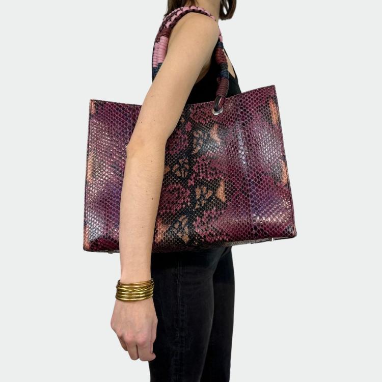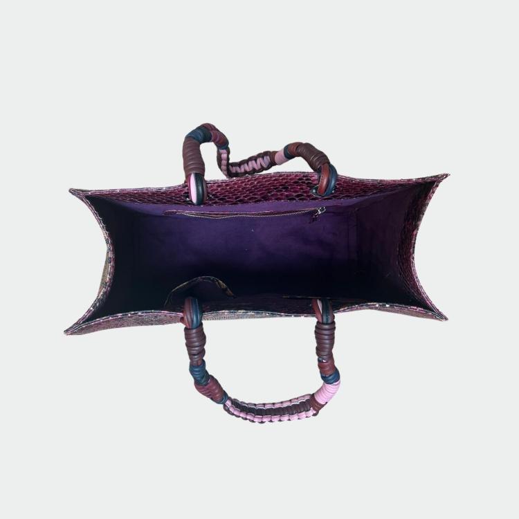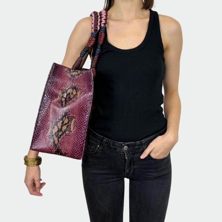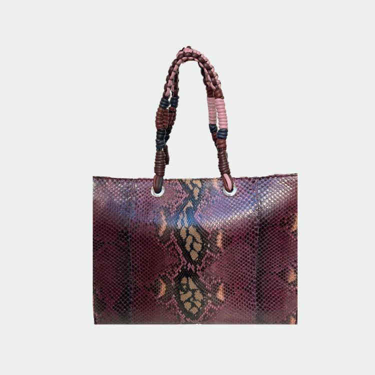 Sac en python, avec doublure intérieure en coton et anses tressées.