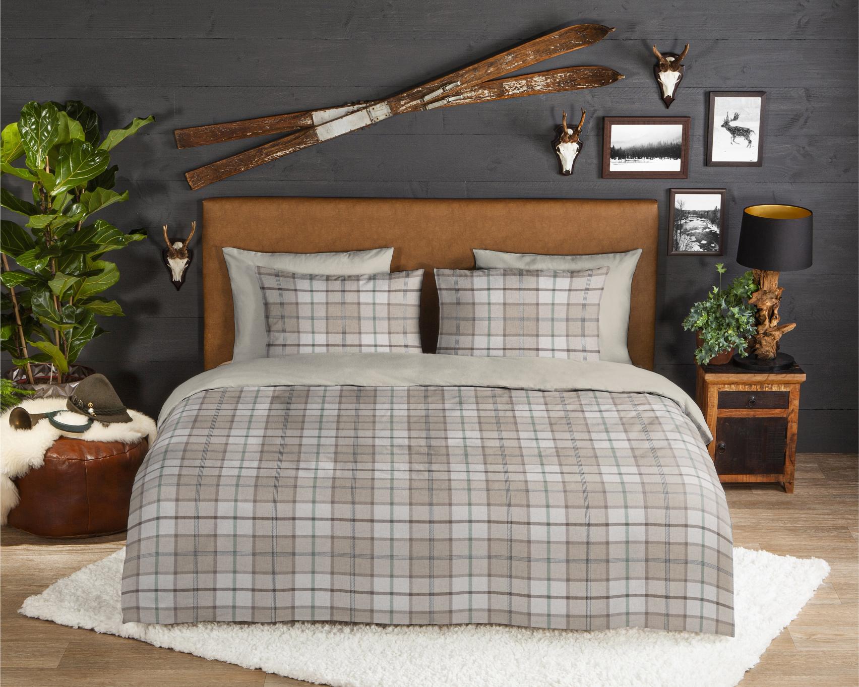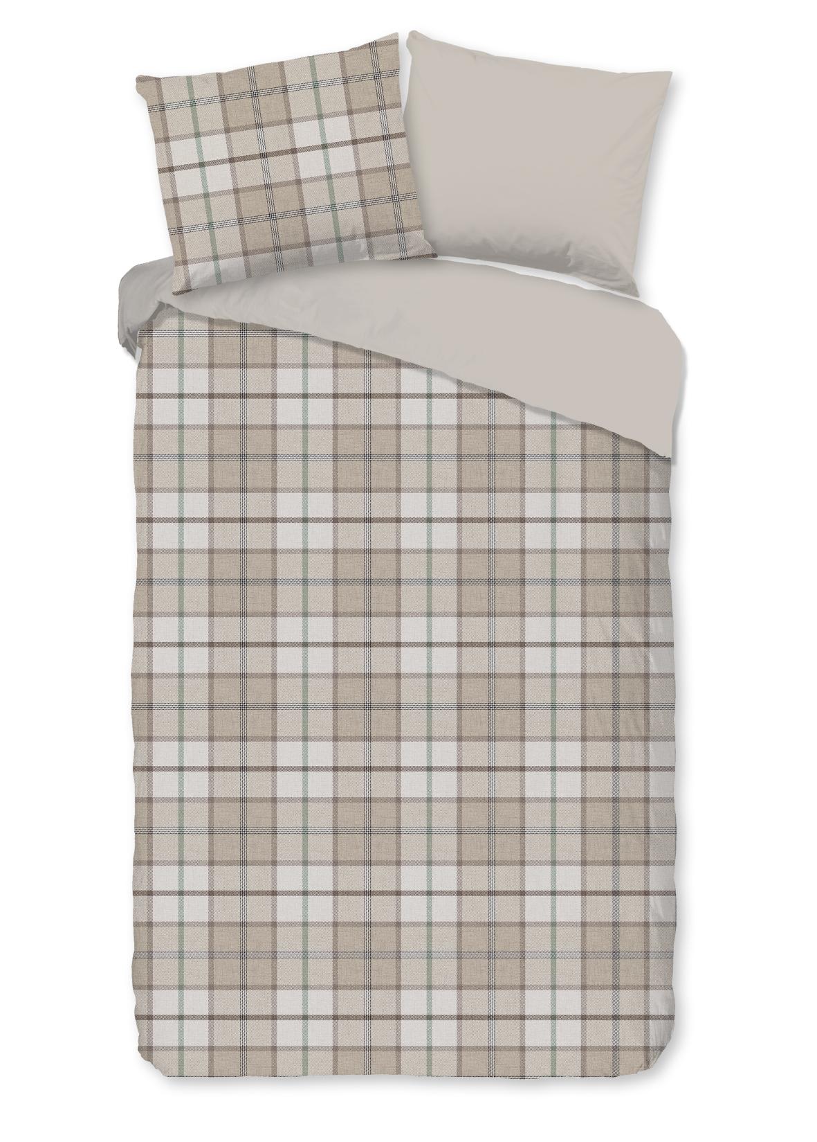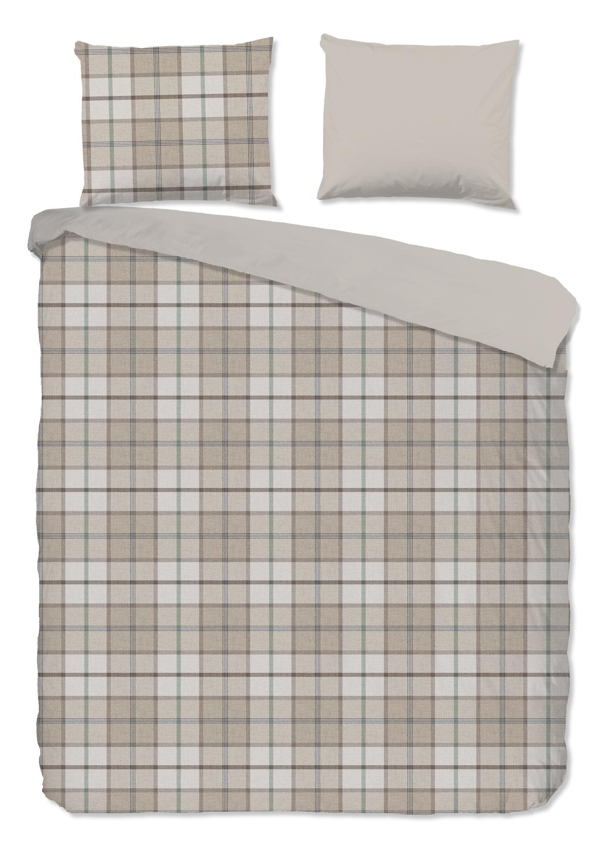 Housse de couette en flanelle Bernardus de Good Morning, de couleur sable, avec un motif à carreaux. La housse de couette est faite de 100% coton/flanelle légèrement brossé, créant une couche douce comme du velours qui est agréablement chaude - parfaite pour les nuits froides.