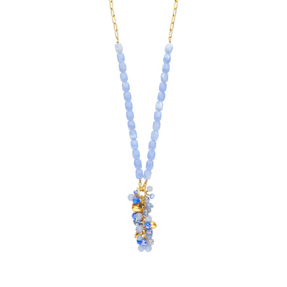 Sautoir de style bohème, pendentif de perles bleu clair en faisceau avec des accents dorés