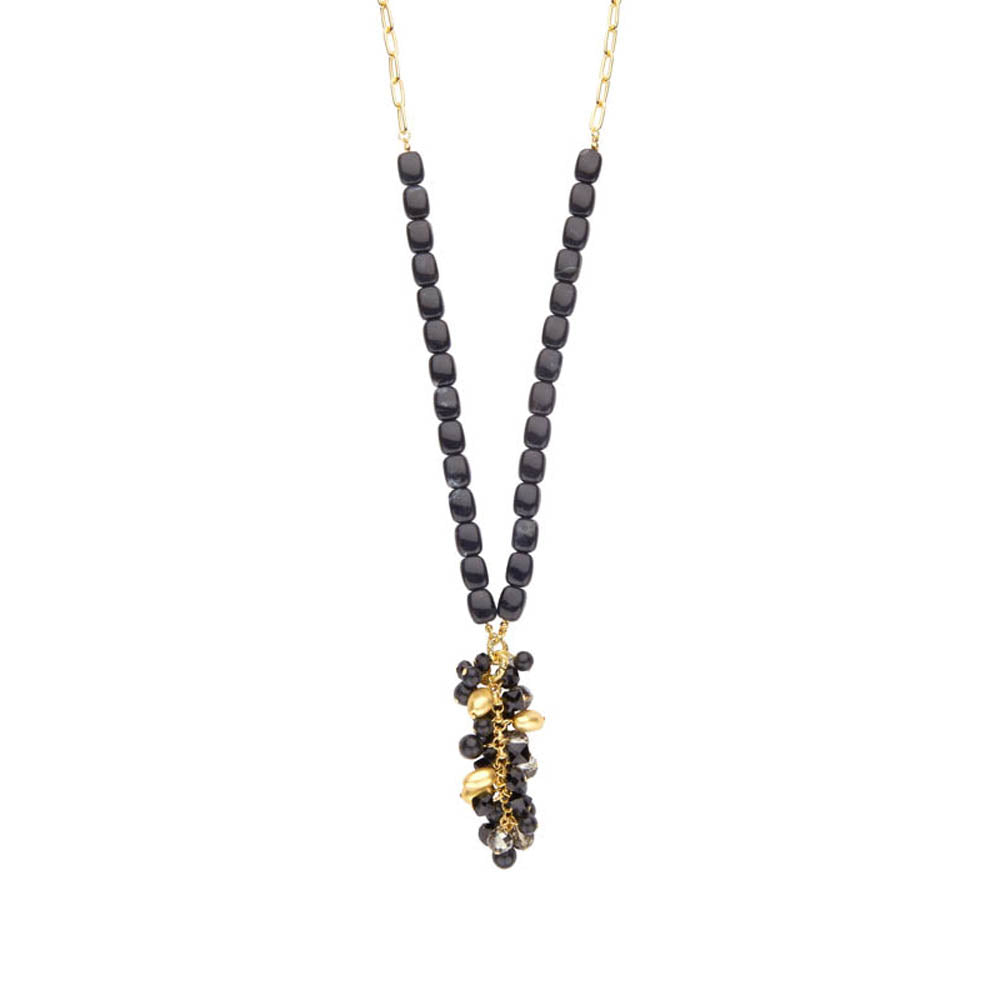 Sautoir de style bohème, pendentif de perles noires en faisceau avec des accents dorés