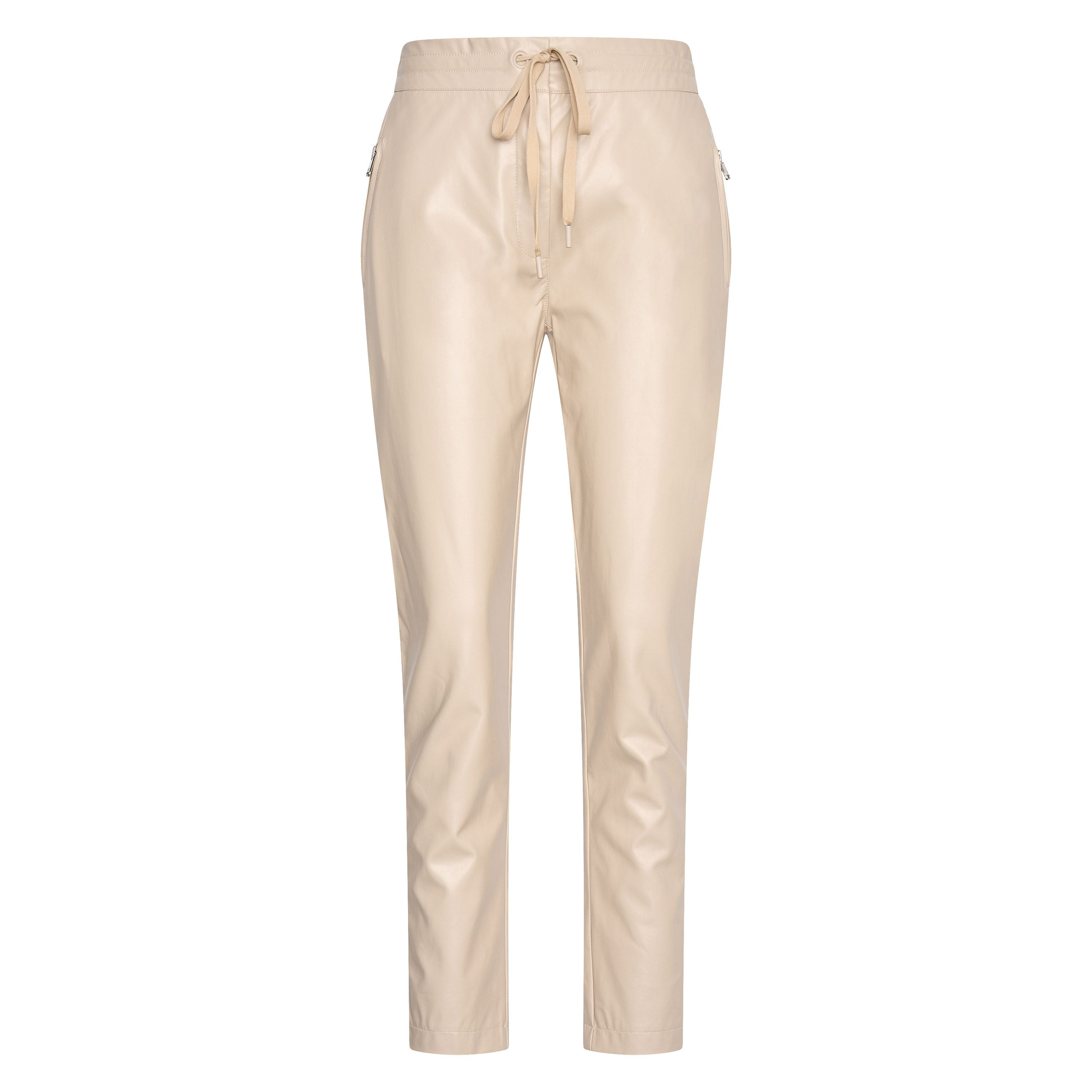 Pantalon coupe slim * Tissu PU * Ceinture en tissu avec élastique à l'intérieur du dos et cordon réglable * Fermeture réelle à l'avant avec fermeture éclair et agrafe * 2 poches insérées à l'avant avec fermeture éclair * Plaque logo en métal à l'avant