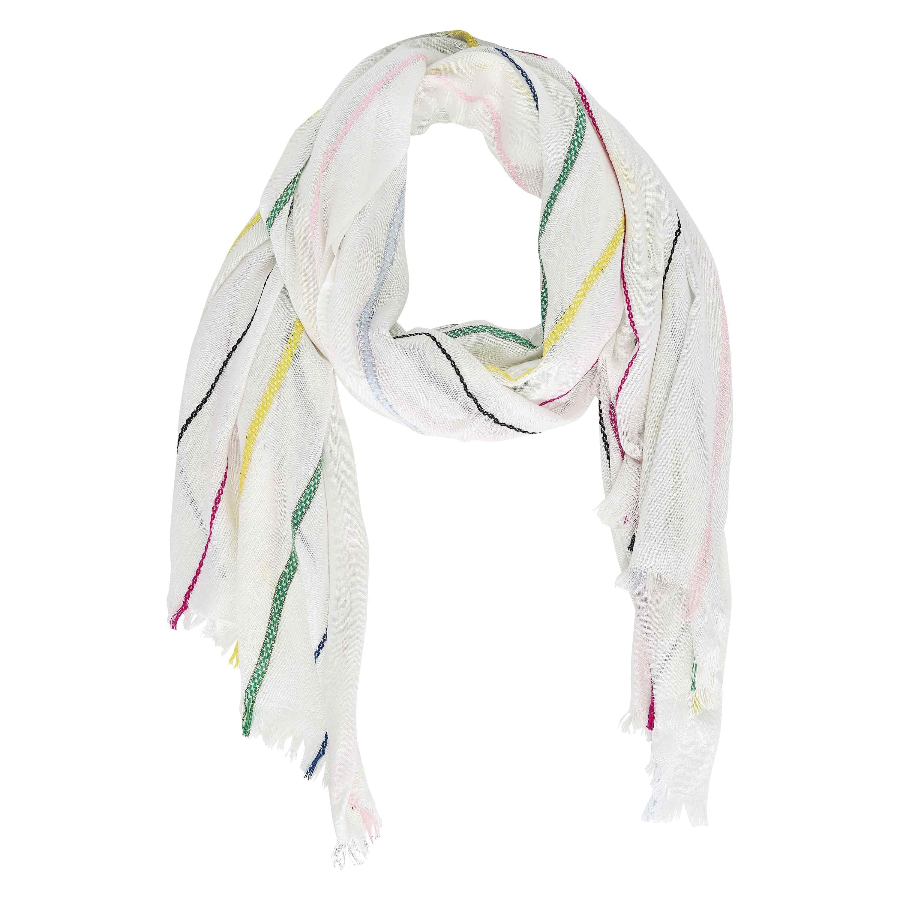 Til je stijl met onze elegant katoen scarf featuring multi-color strepen adorned met matching sequins. The perfect accessory om add a touch of glamour om any outfit. Complete met a small logo label voor a subtle yet chic finishing touch. Upgrade jouw garderobe met onze luxurious katoen scarf today!