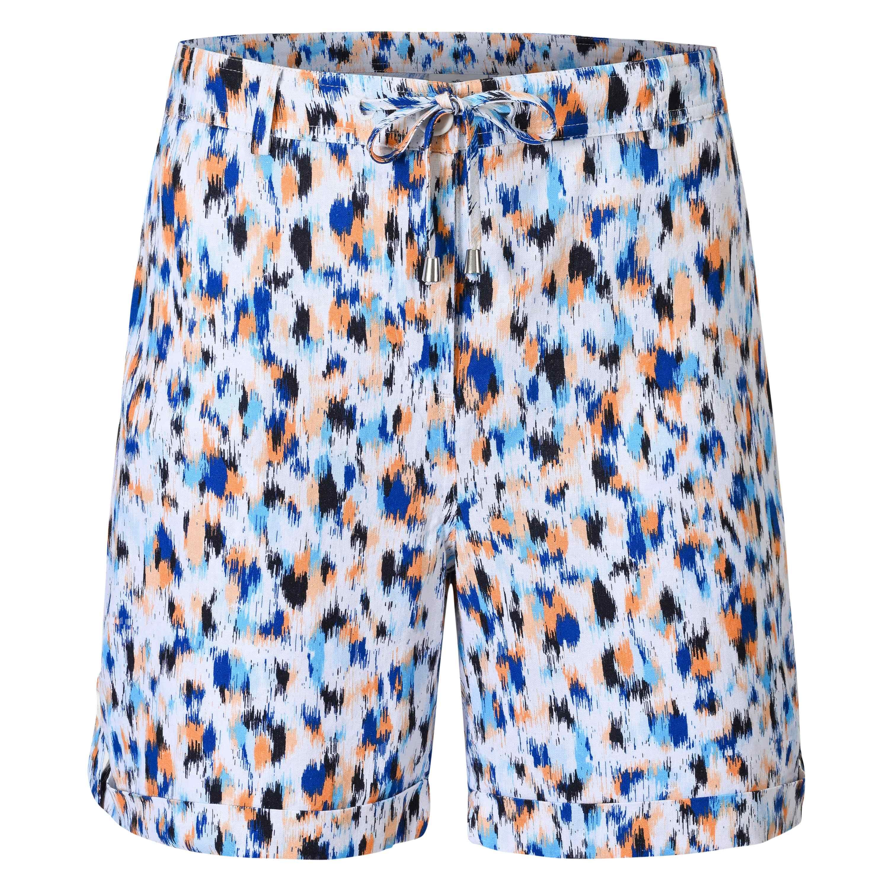 Linen mix shorts met a colorfull all over print or in blue Indigo