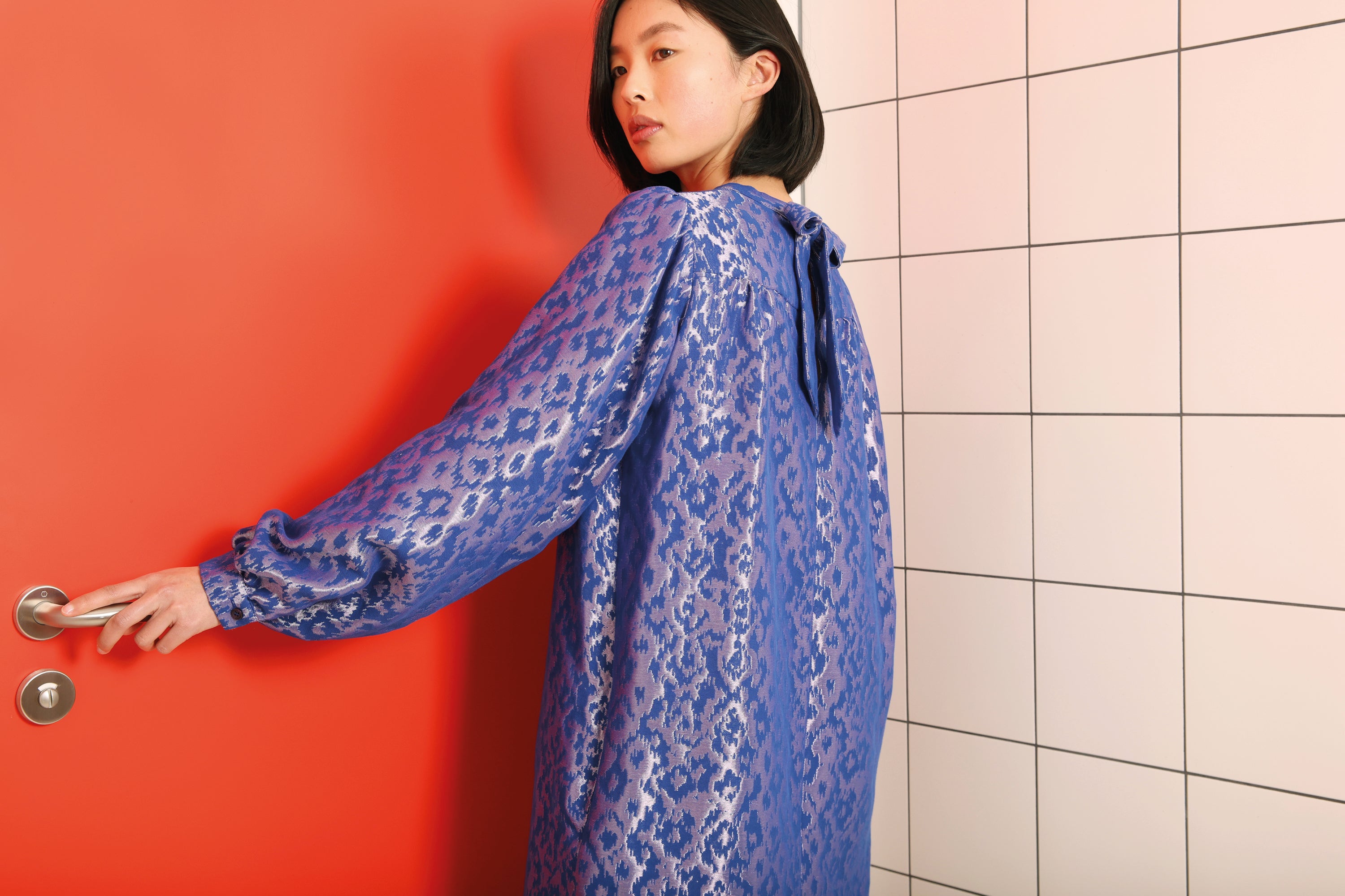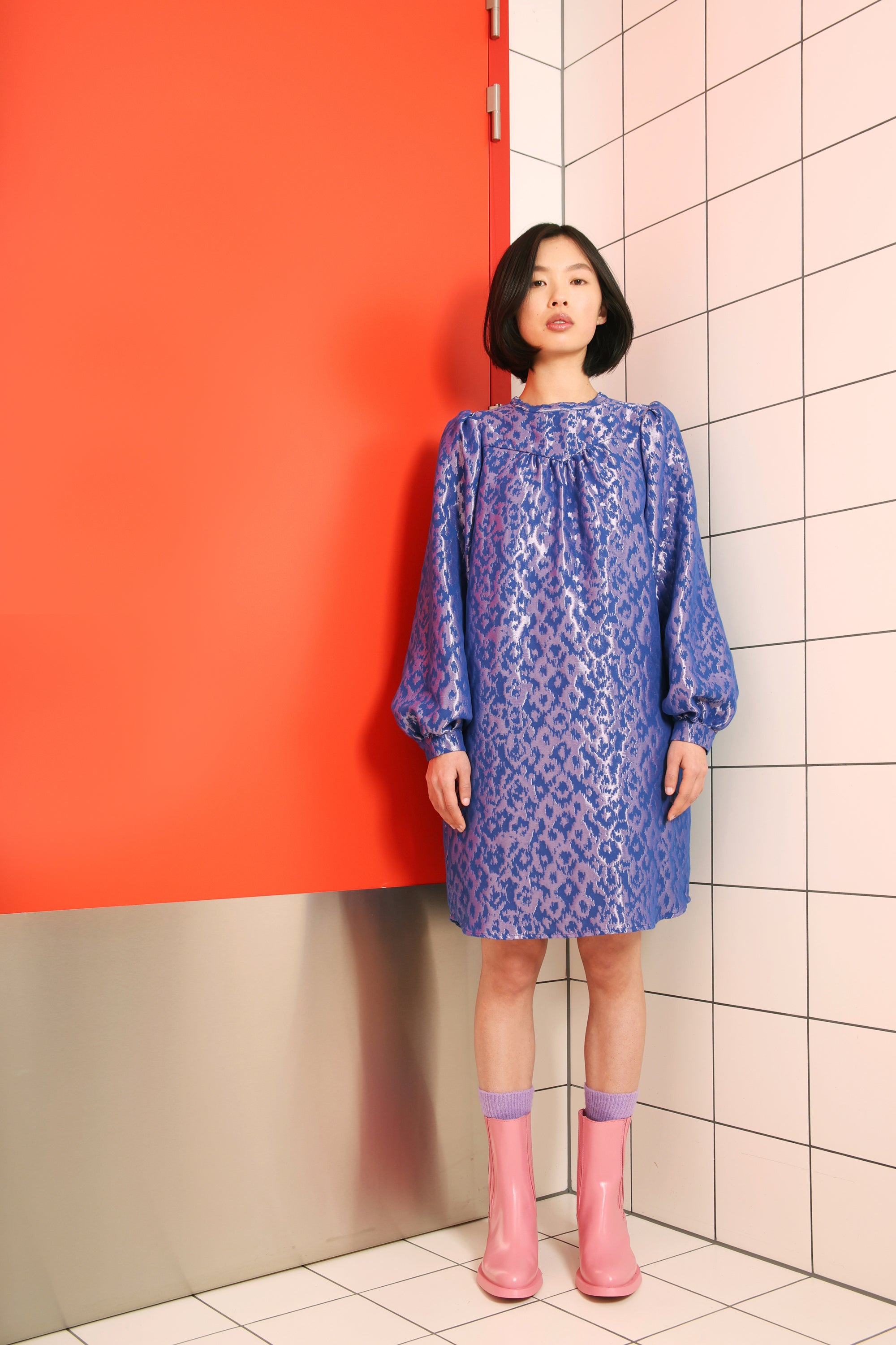 robe à manches longues en jacquard brillant