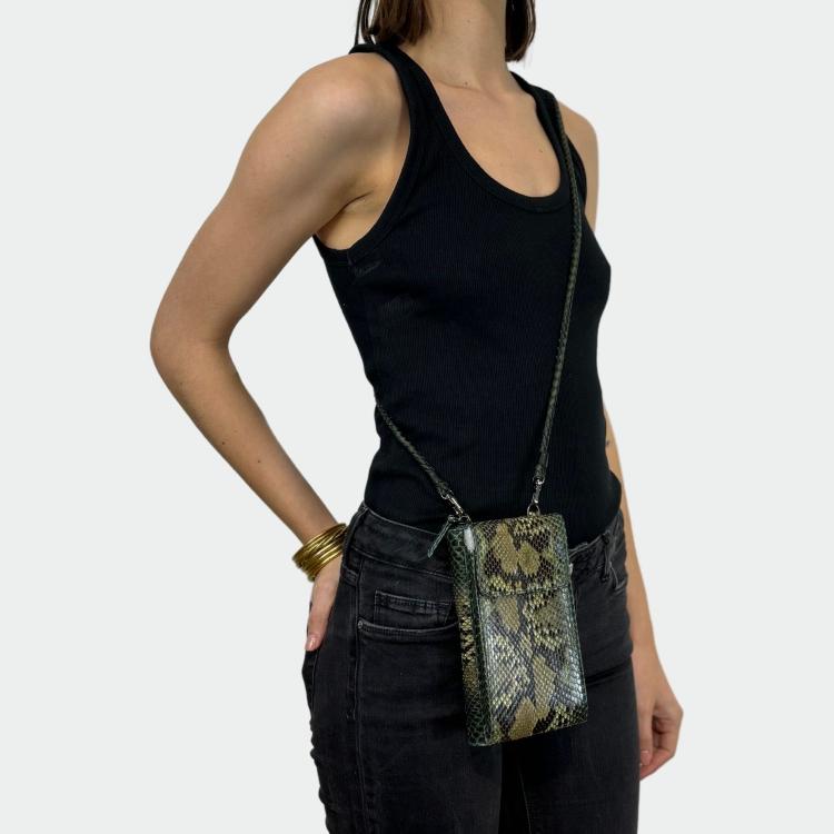 Pochette en python, avec double compartiment : compartiment portefeuille et