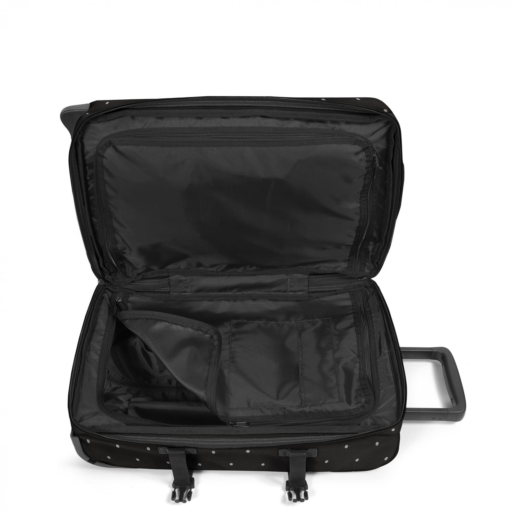 Notre collection Glitter Dots ajoute une touche scintillante à nos icônes Eastpak. Le bagage cabine à roulettes Tranverz S est doté d'un cadenas TSA intégré, pour plus de sécurité en voyage. Couverte par notre garantie de 30 ans, cette valise compacte et déperlante sera acceptée comme bagage cabine par la plupart des compagnies aériennes.